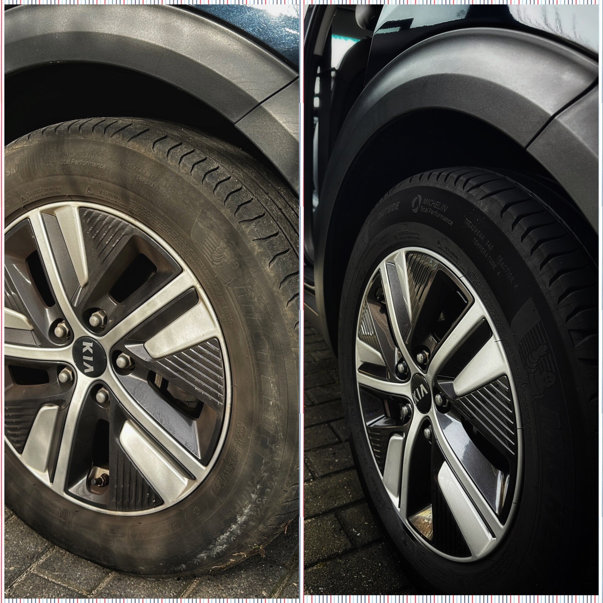 Discover the satisfaction of seeing brake dust and grime vanish, revealing clean, sharp alloys. Our close-up before and after shots of wheels and tires showcase one of the most dramatic transformations we deliver, leaving your wheels looking as good as new.